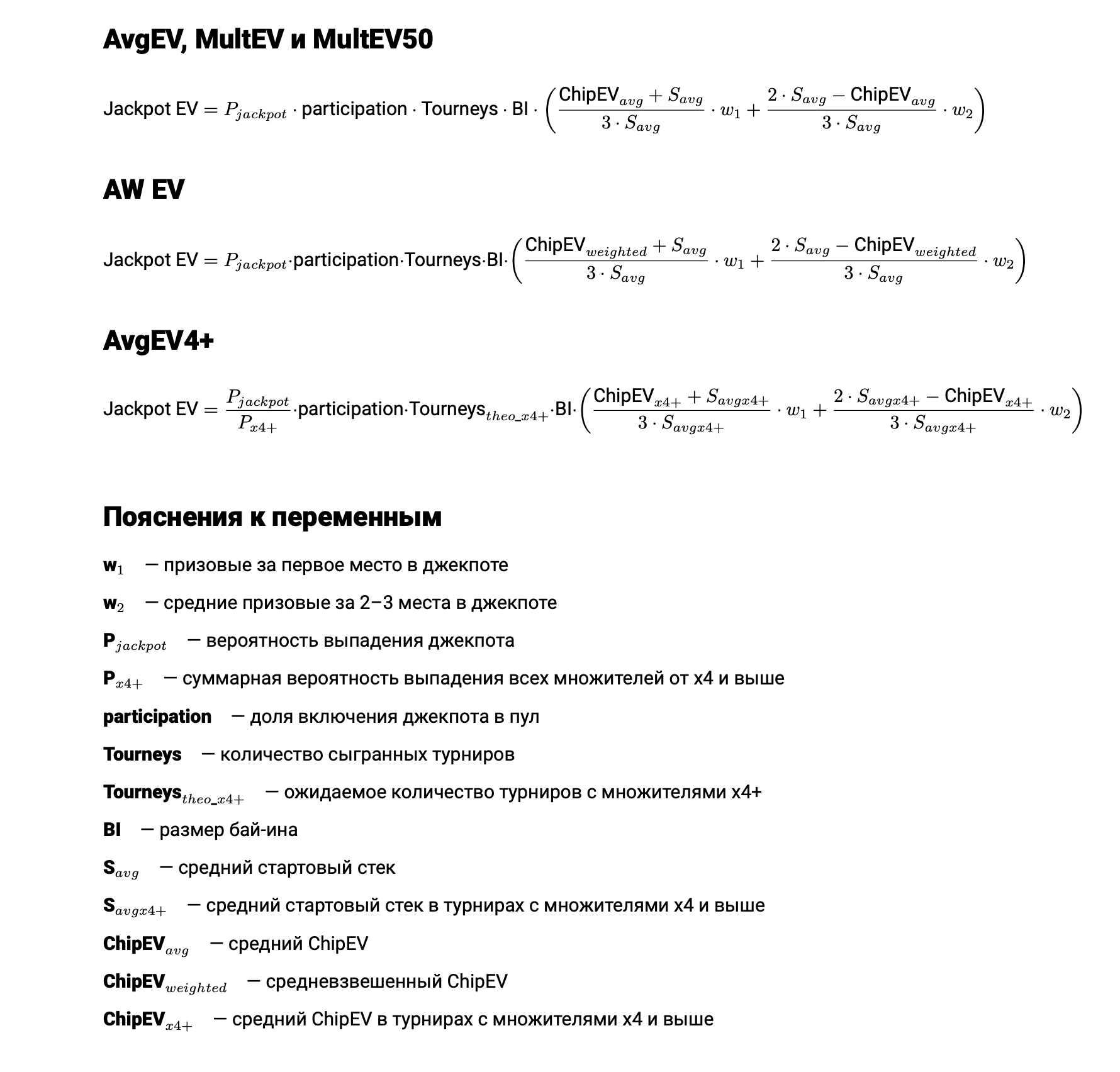 Формула | ChipEV для JackpotEV | Турниры, по которым считается | Как считается EV в выпавшем джекпоте |